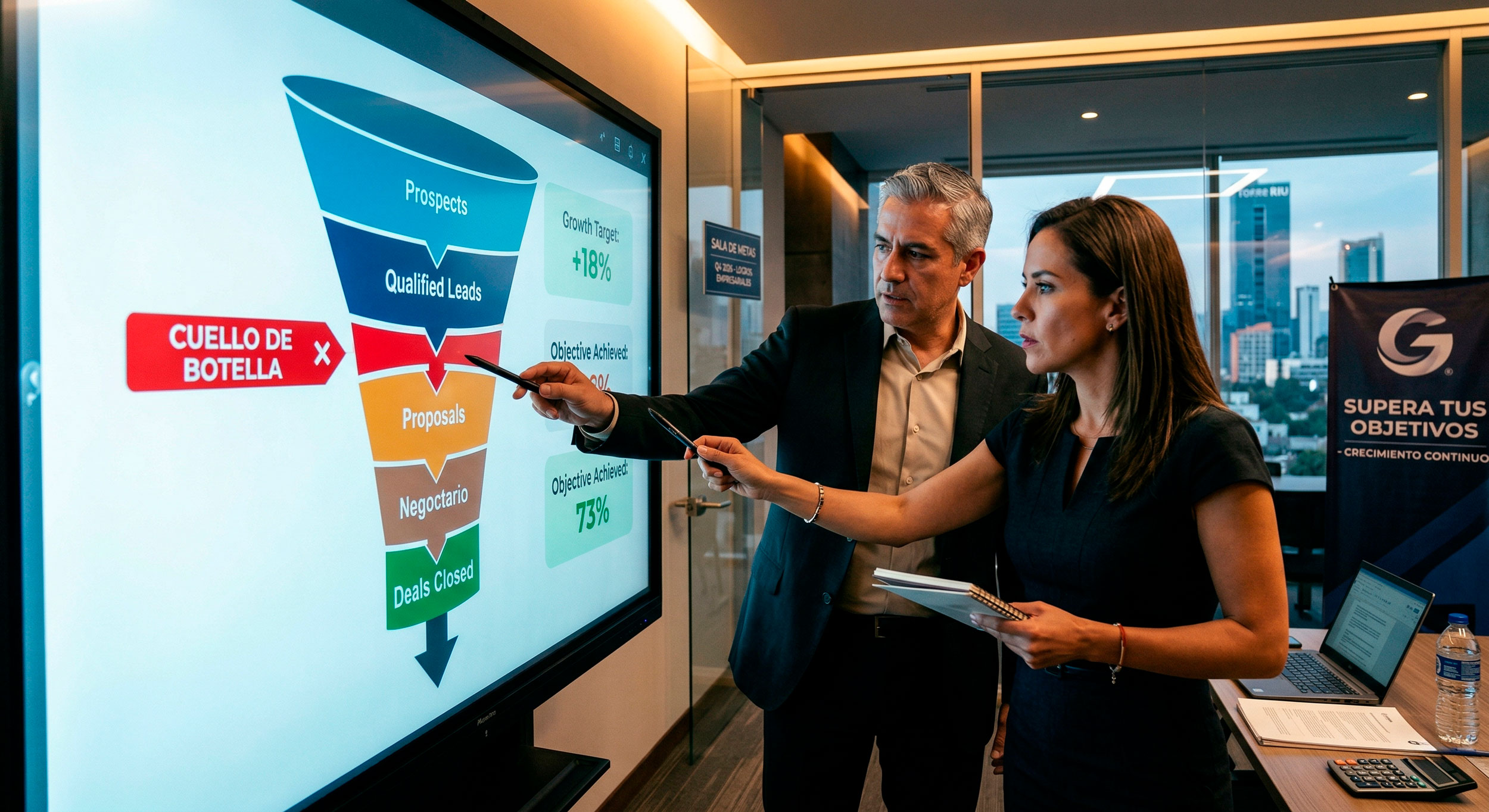 Identificamos en qué etapa exacta del «embudo de ventas» se están perdiendo los prospectos (puntos de fuga) y aplicamos mejoras tácticas inmediatas.